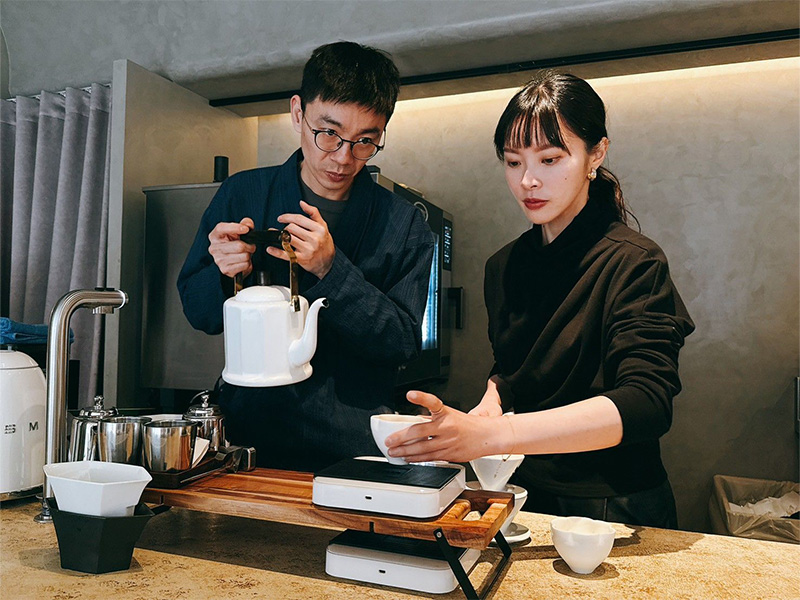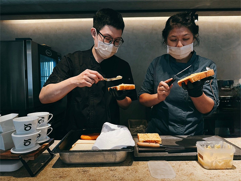 透進有著森林清新氣息的栗林裏中,蓬蓬鬆鬆的玉子燒在鍋中啪滋啪滋地作響、咖啡香緩緩圍繞在透光氛圍,而主廚們挽起笑容、互道早安,