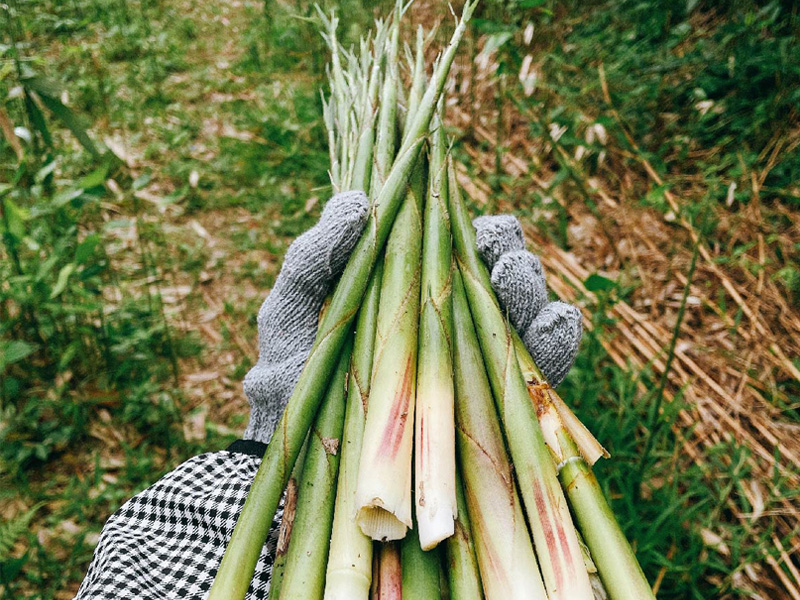 順著土地的坡度,折起約手掌長的箭筍,不知不覺手上滿滿一大把箭筍,是我們今天的大豐收!